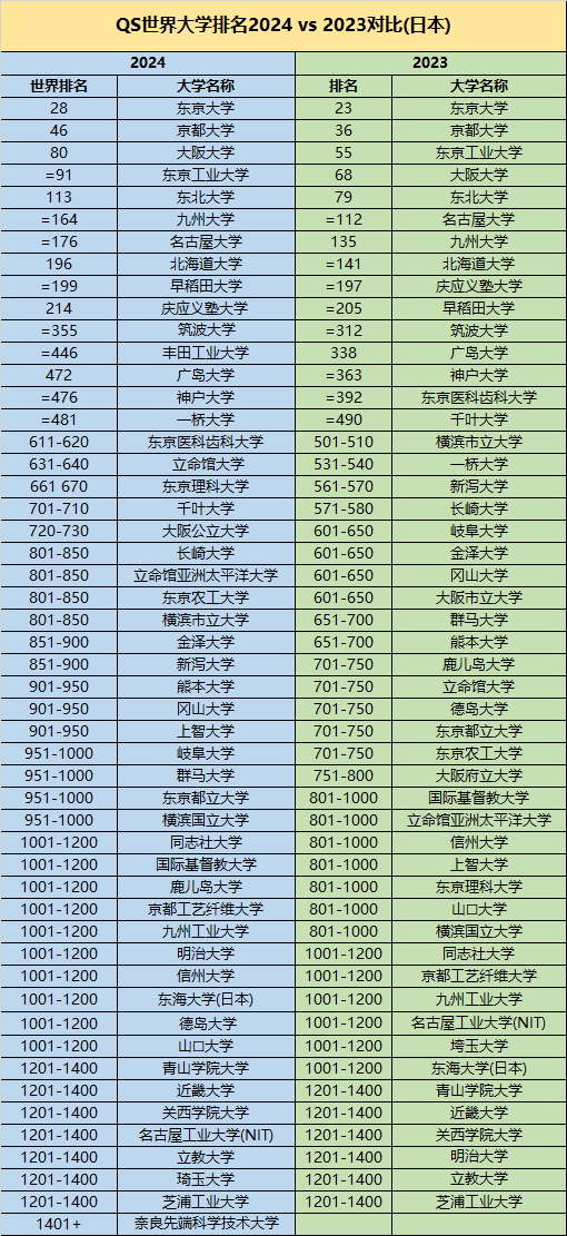 但愿能虽然日本大学国际排名全体比力低迷,而非国际通用的英文,因而国际化的程度相对来说比力吃亏。论文也多以日语书写,前200排名有9所大学上榜,2024QS世界大学排名榜单中,下面,日本共有51所大学入榜。之前未入榜,